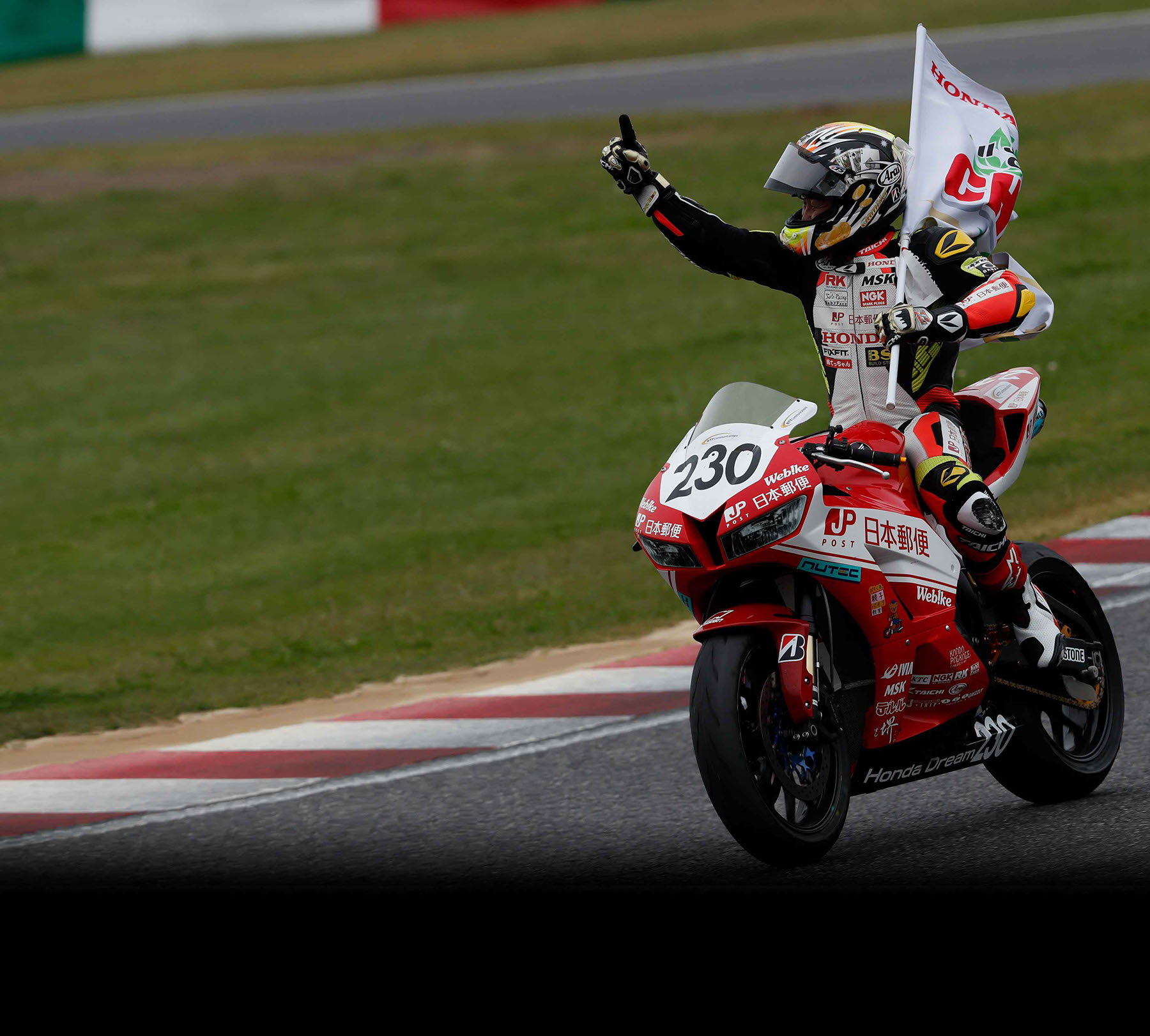 「日本郵便さん、HONDAさんを始め関わってくださったすべての方に感謝いたします。去年の最終戦での出来事から今日まで一年、自分たちが何をやるべきかを、ライダー、チームスタッフ、それぞれが考えて行動したことがシリーズチャンピオンという結果を生んでくれました。小山知良を始め、スタッフの頑張りと努力に感謝という言葉しかないです。
